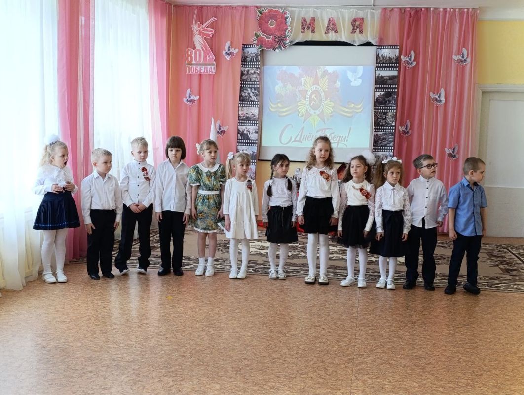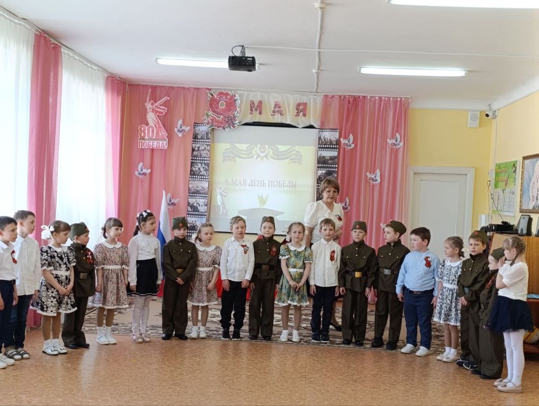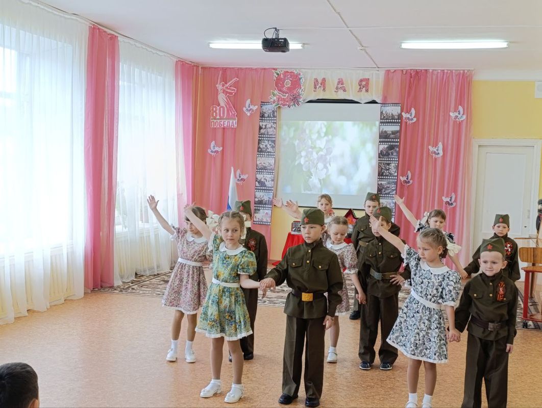 Ребята старшей группы исполнили песню «Этот славный день Победы» и прочитали стихи о Великой отечественной войне.