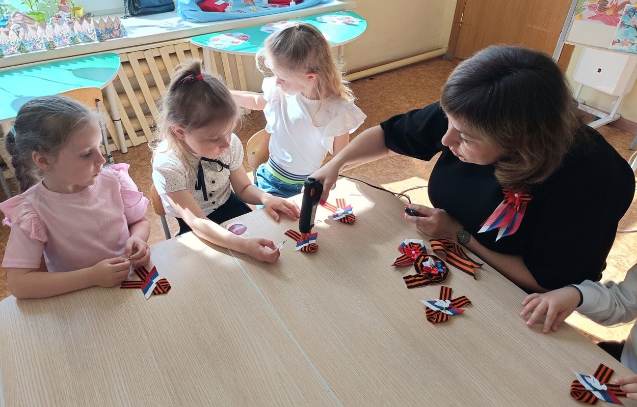 В начале мероприятия Юлия Игоревна рассказала детям о Георгии Победоносце, об истории георгиевской ленты и о её значении. Ребята с интересом слушали рассказ, что такое Георгиевская ленточка, почему именно она так называется, что означают ее цвета, и что означает голубь «Мира». Затем Юлия Игоревна предложила детям перейти к созданию Георгиевской ленточки «Голубь победы», которая стала для них символом общей памяти и уважения к подвигам предков. Ребята с большим энтузиазмом включились в творческий процесс. Создавая красивые броши своими руками, они смогли выразить свою благодарность героям войны и почтить их память.