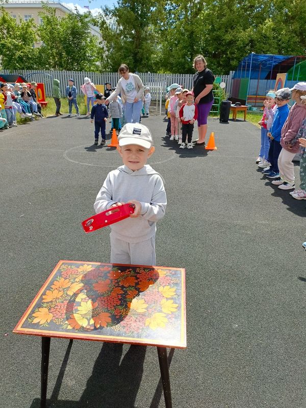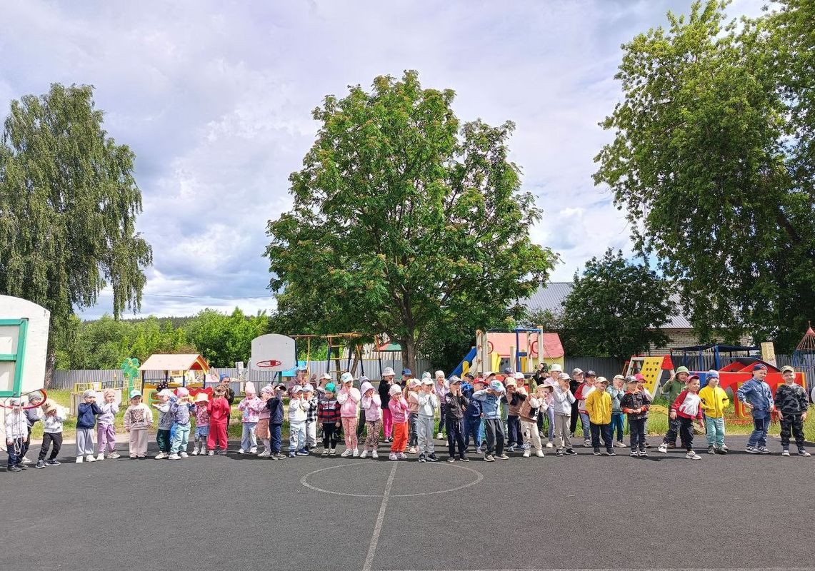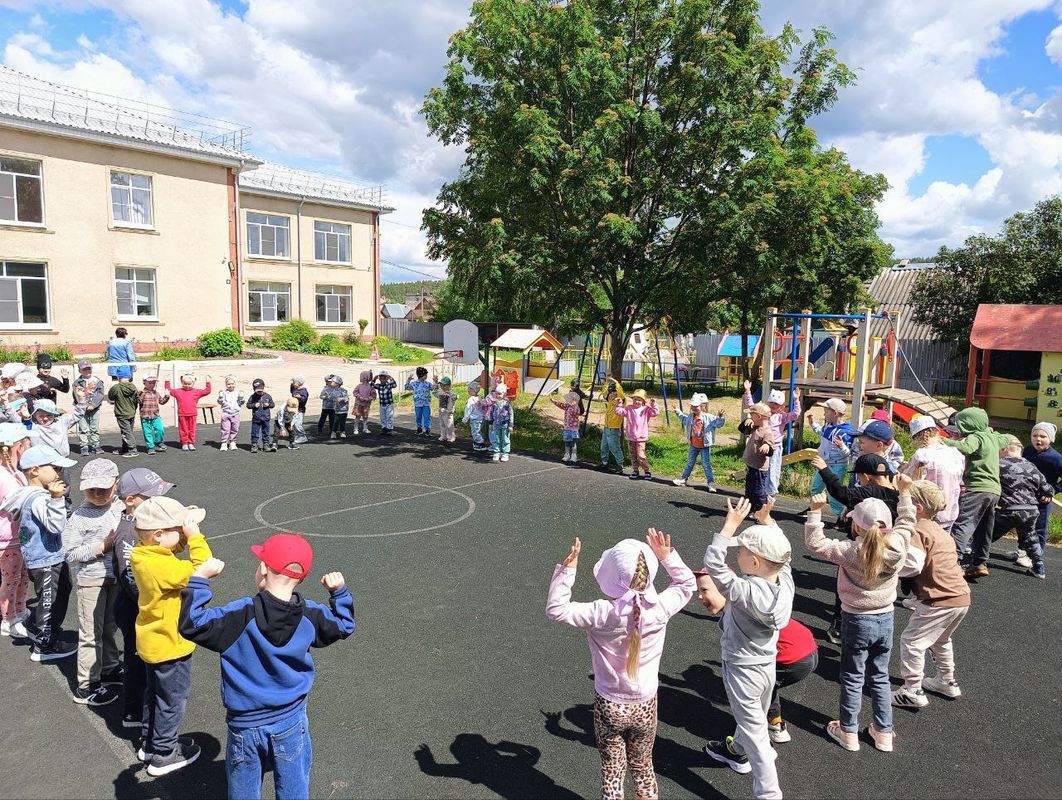 Воспитанники средней и старшей групп поиграли в подвижную игру «Постройся правильно», «Шляпка», а малыши из младших групп в игру «Бей в бубен».