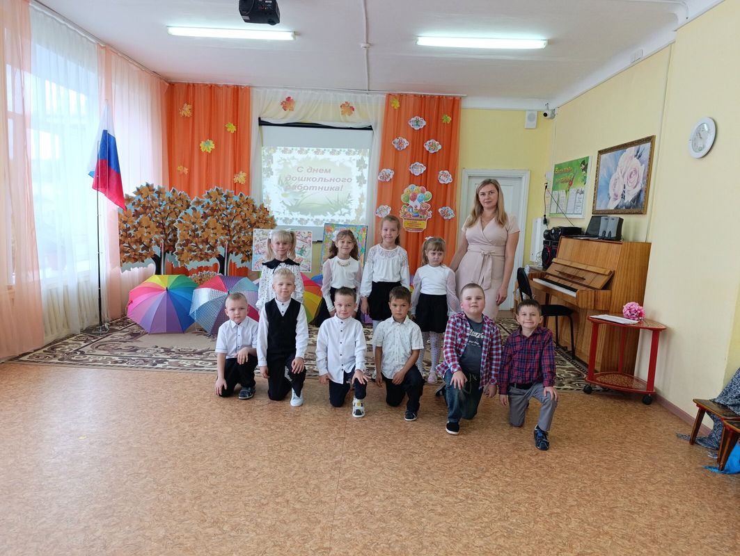 В этот особенный осенний день в нашем детском саду с самого утра царила праздничная и торжественная обстановка. Во всех группах с ребятами были проведены беседы о празднике, о необходимости и важности всех профессий сотрудников дошкольных образовательных учреждений. Воспитанники средних, старшей, подготовительной групп с большой ответственностью и старанием подготовили концерт.