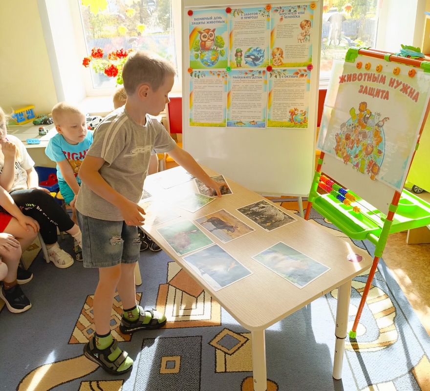 В подготовительной группе состоялся тематический день, приуроченный ко Дню защиты животных. Воспитанники с интересом ознакомились с презентацией «Живая планета — живая душа», посмотрели мультфильм «Кот, который гуляет сам по себе», изучили содержание альбомов о диких и домашних животных, рассмотрели и прочли интересные факты о животных, занесенных в красную книгу, а также играли в познавательные дидактические игры.