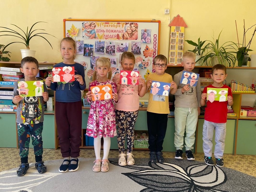 В День пожилого человека, дети подготовительной группы беседовали на тему «День пожилого человека», рассматривали фотографии, играли в дидактическую игру «Скажи ласковое слово», организовали выставку фотографий пожилых родственников с пожеланиями и сделали открытки своими руками.