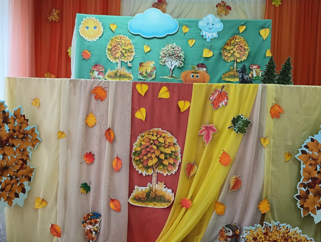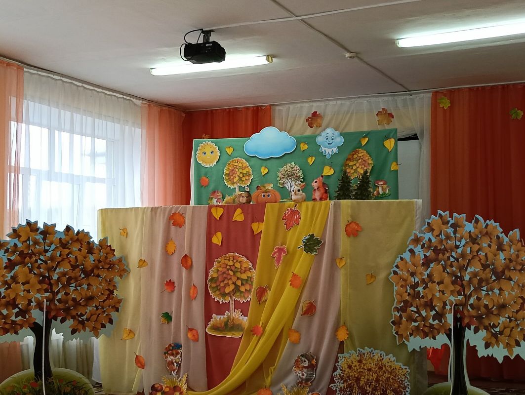 Ребята, затаив дыхание, ожидали начала представления. На фоне красочных декораций один за другим на сцене появлялись сказочные герои: Маленький Тыквёнок, Ёжик, Волк, Белочка, Заяц и Воробей.