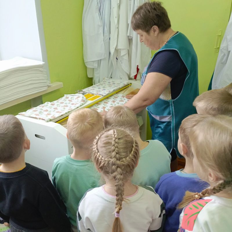 Воспитатель и воспитанники много говорили на тему профессий. Ведь для работы детского сада важны люди разных профессий. Беседы «Кто построил детский сад?», «Кто работает в детском саду?», «Какую пользу приносит детский сад?» вызвали огромный интерес у ребят. Для закрепления знаний о профессиях сотрудников, проводили экскурсии по детскому саду, смотрели за результатом труда взрослых, а потом беседовали на тему: «Кто заботится о нас в детском саду?»