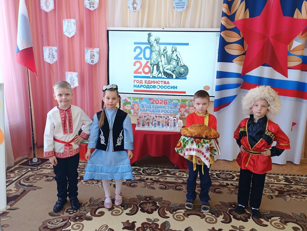 Сегодня в нашем детском саду состоялась торжественная церемония, посвящённая открытию Года единства народов России, на которой был дан официальный старт мероприятиям, программам и конкурсам, направленным на укрепление межнационального единства и гармонизацию межэтнических отношений. Церемония прошла под девизом «В единстве народов – сила России».